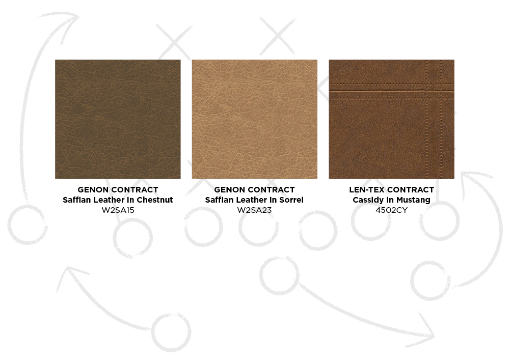 Every great space deserves an anchor of gravitas and our curated palette of rich browns and warm tans delivers just that. This selection elegantly captures the luxurious, iconic texture of aged leather—a sophisticated nod to the enduring tradition of the game. For a refined, tactile experience that evokes this classic motif, look no further than Genon Contract Saffian Leather in shades like Chestnut and Sorrel, or the rugged elegance of Len-Tex Contract Cassidy in Mustang.